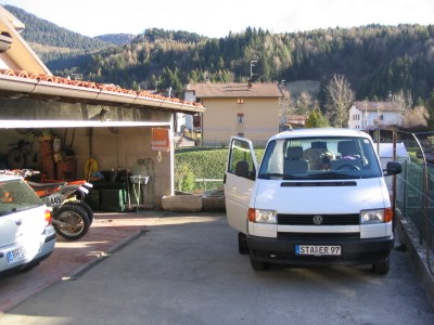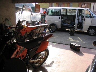 Wie auch schon die letzten Male hat uns der Wirt seinen Schuppen zum Unterbringen der Motorräder zur Verfügung gestellt. Das ist ihm ganz recht, denn dann stehen unsere Kisten nicht auf der Strasse - auch in Italien gibt es Grüne. |