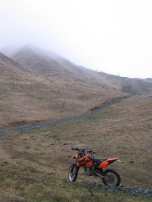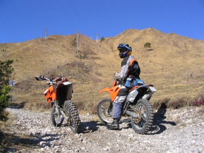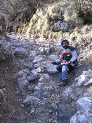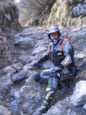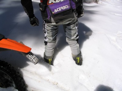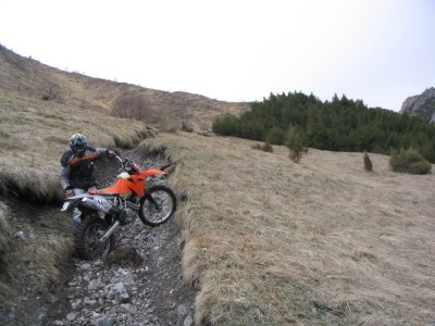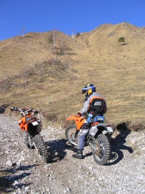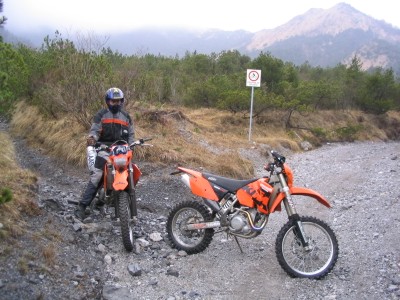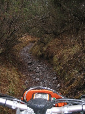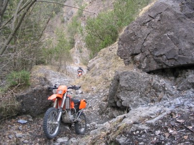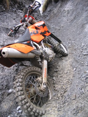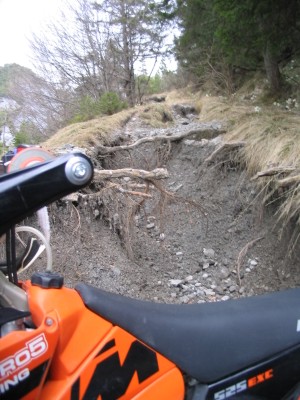 Hier ist leider Schluß. Da wir keine Motorsäge dabeihaben geht nix mehr - umdrehen. Das Motorrad wiegt ja nur 120kg - ein Kinderspiel. |