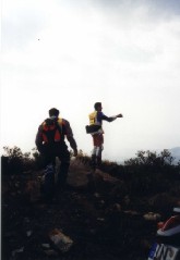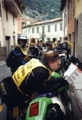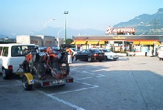 Das komische Moped aus München (rechts) hat`s auf den Berg geschafft! Runter geht`s mit der Müllabfuhr.