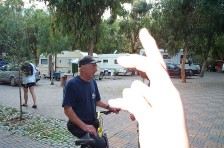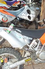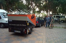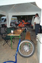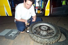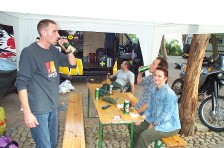Murks vor dem Frühstück am Samstag, 27.10.01. Vorrübergehend dient die Bierbank als Montagebock.