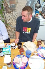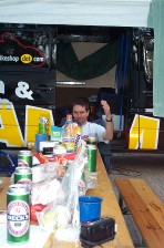 Hat das Bier die lange Fahrt überlebt? Hier Tester El beim Anstich.