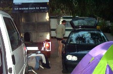 ![]() Im Vordergrund wieder mit dabei: Das komische Gefährt aus München. Auch heuer ohne Motorschaden. Und das alles mit 800.000 Kilometern auf der "Uhr". |