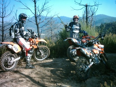 Die aktiven Fahrer: Jürgen (400 EXC), Christl (525 EXC), Tom (400 Kickstart SC), Jan (450 EXC). Alles KTM, was sonst???