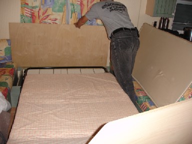 Heuer, wie letztes Jahr: Mobile Home gemietet. Das hat wirkliche Vorteile: 1. Bude absperren können, 2. Wenns regent säuft nix ab, 3. Betten, Herd, Schränke, Toilette ------> 4. Nicht am Boden schlafen müssen, wie die Viecher.