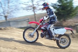 ![]() Die Zuckerpuppe aus der Zweitaktgruppe: Monca auf der Honda CR250, ehem. Crosser. Jetzt mit Beleuchtung und mit Straßenzulassung.